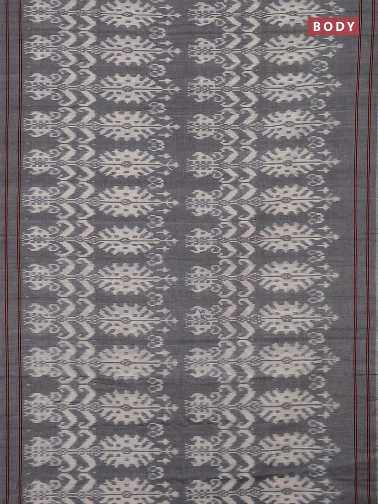 Ikat cotton saree elephant grey and red with allover ikat weaves and simple border