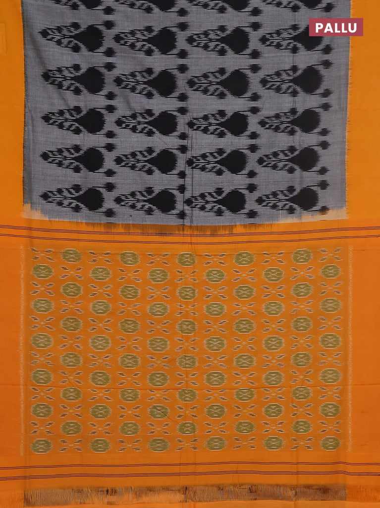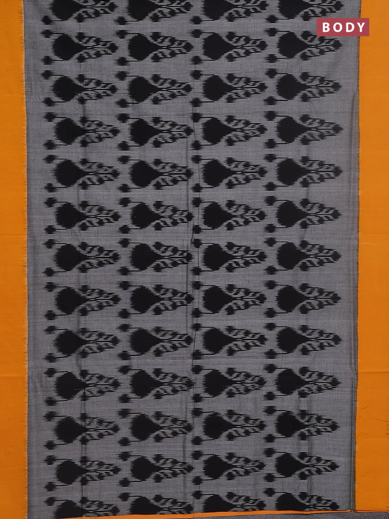 Ikat cotton saree grey and mustard yellow with allover ikat butta weaves and long ikat style border