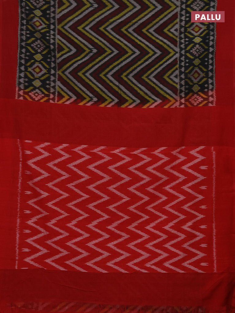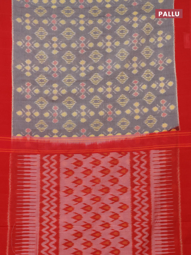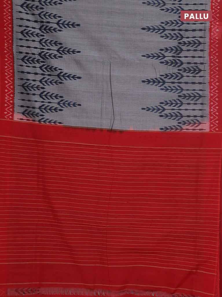 Ikat cotton saree grey and red with allover ikat weaves and simple border