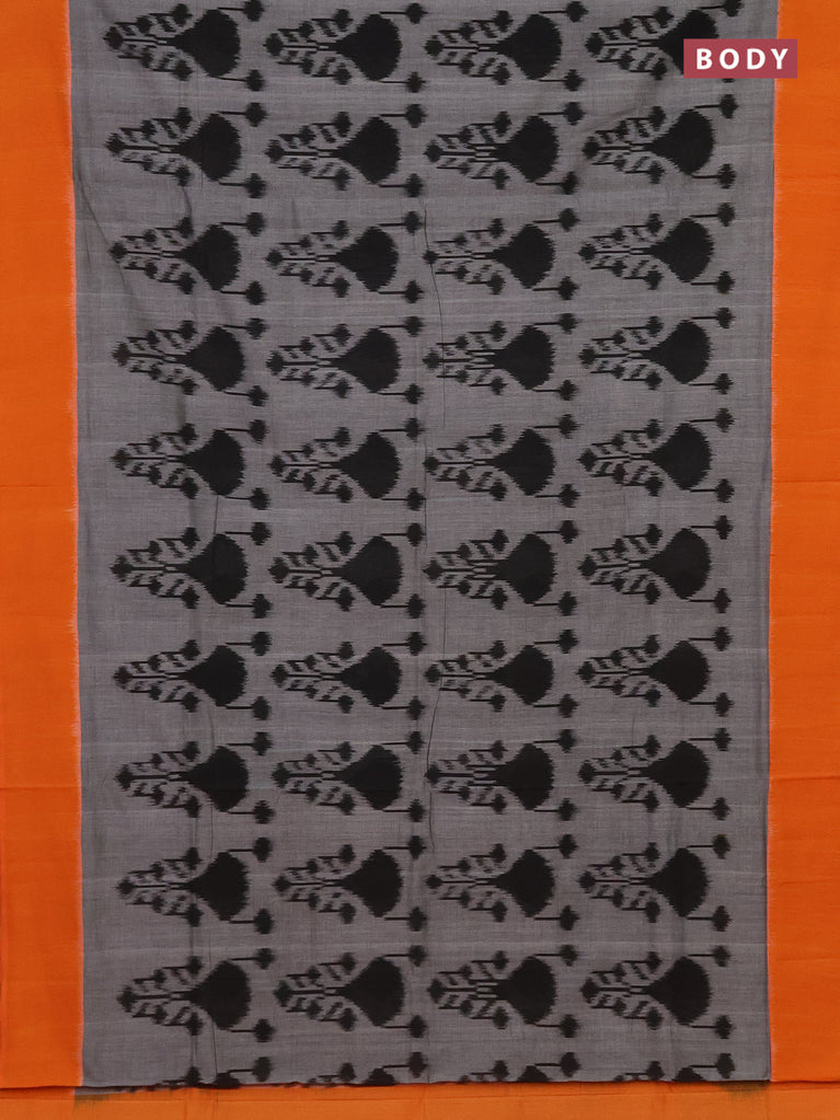 Ikat cotton saree grey and orange with allover ikat weaves and simple border