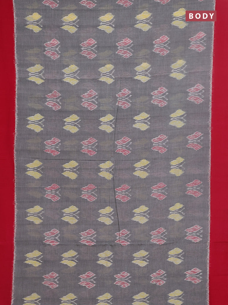 Ikat cotton saree grey and red with allover ikat butta weaves and simple border