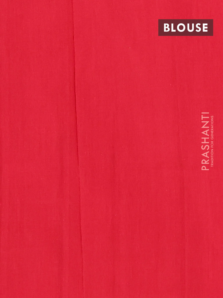 Ikat cotton saree grey and kumkum red with plain body and ikat style border