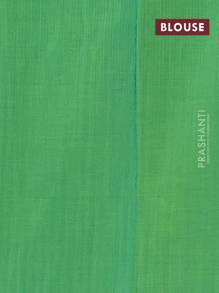 Ikat cotton saree green and blue with allover ikat weaves and simple border