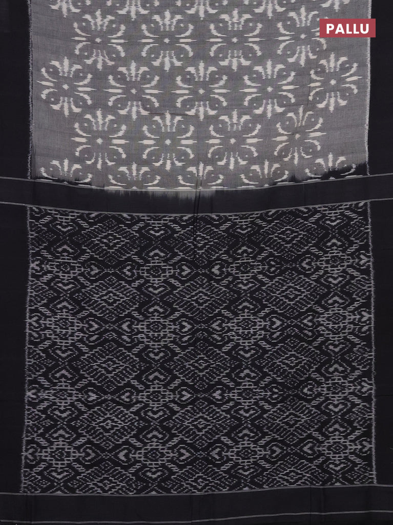 Ikat cotton saree grey and black with allover ikat weaves and simple border
