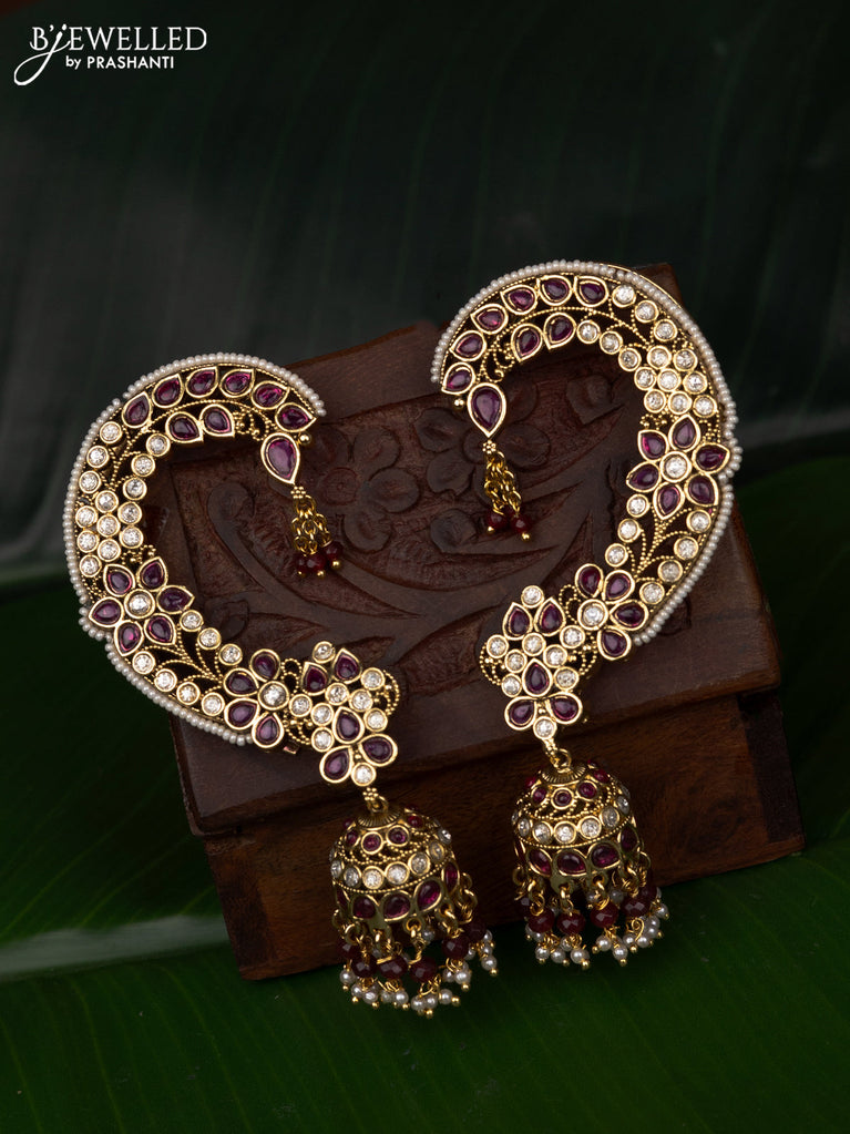 Antique earcuff jhumka with jadau kundan stones and pearl & beads hanging
