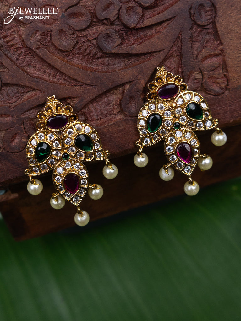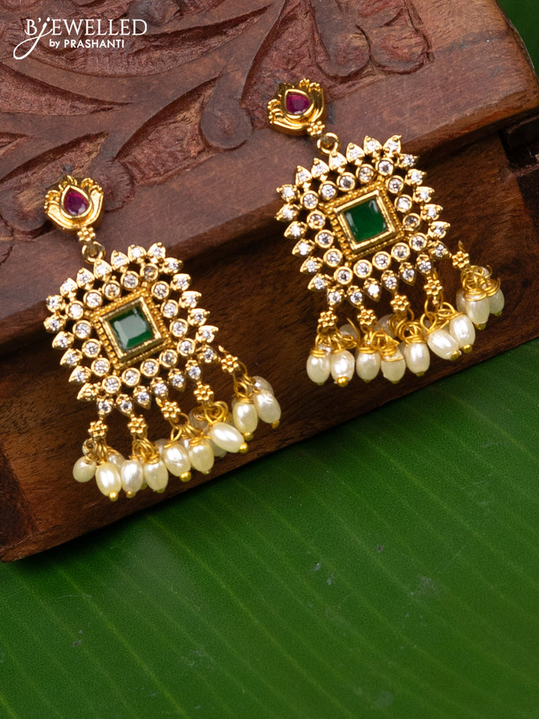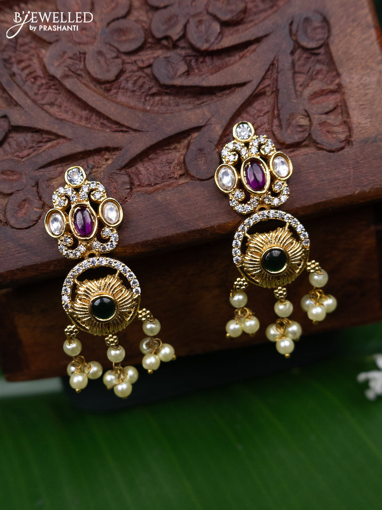 Antique earring with kemp & kundan cz stones and pearl hangings