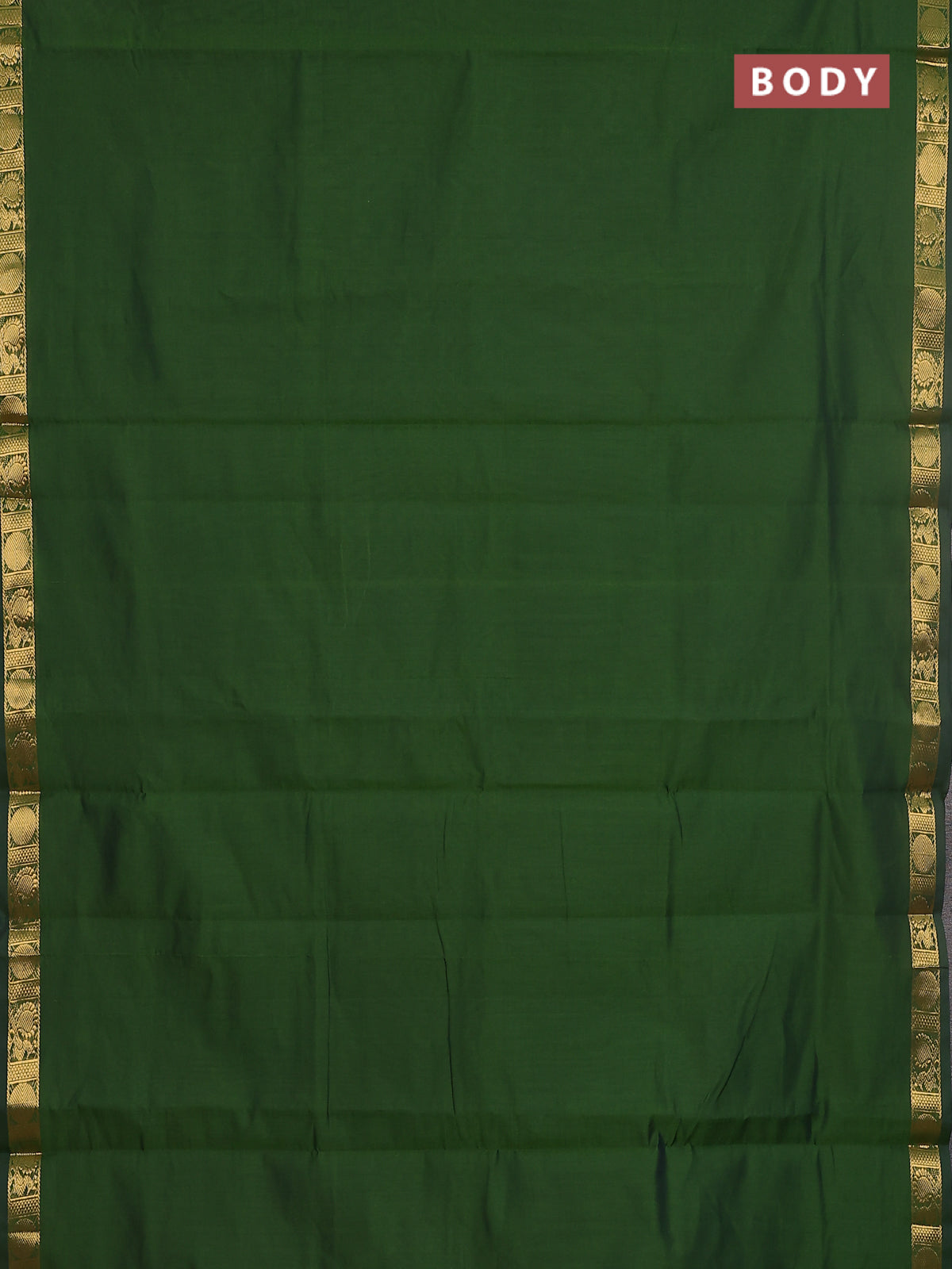10 yards Poly cotton saree green and purple with plain body and zari woven border