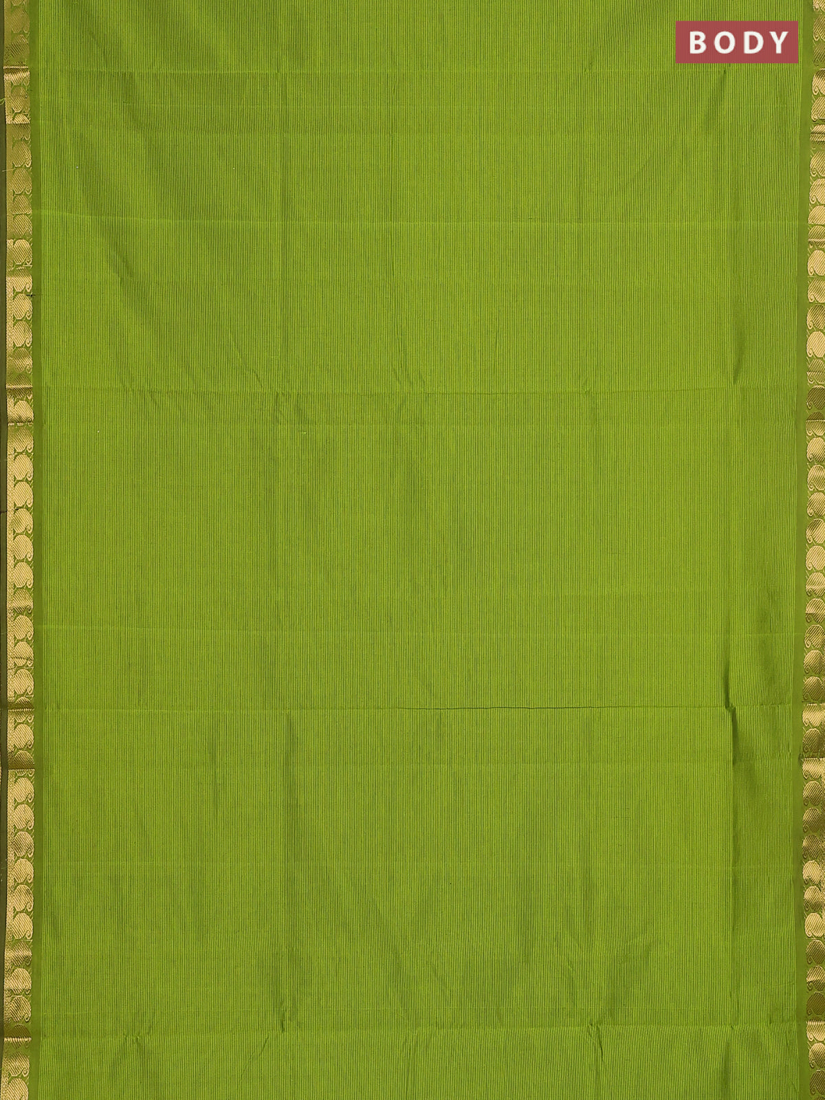 10 yards Poly cotton saree light green and purple with plain body and zari woven border