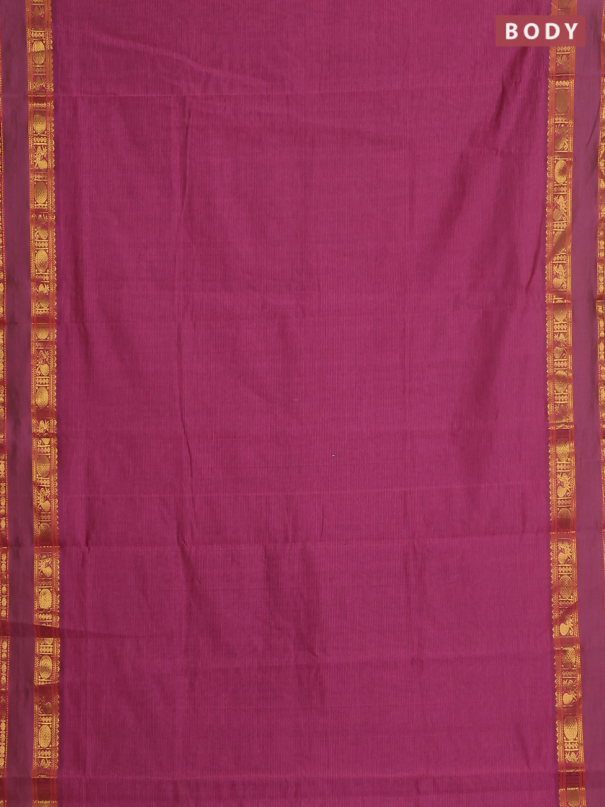 10 yards Poly cotton saree mauve pink and blue with plain body and rettapet zari woven border