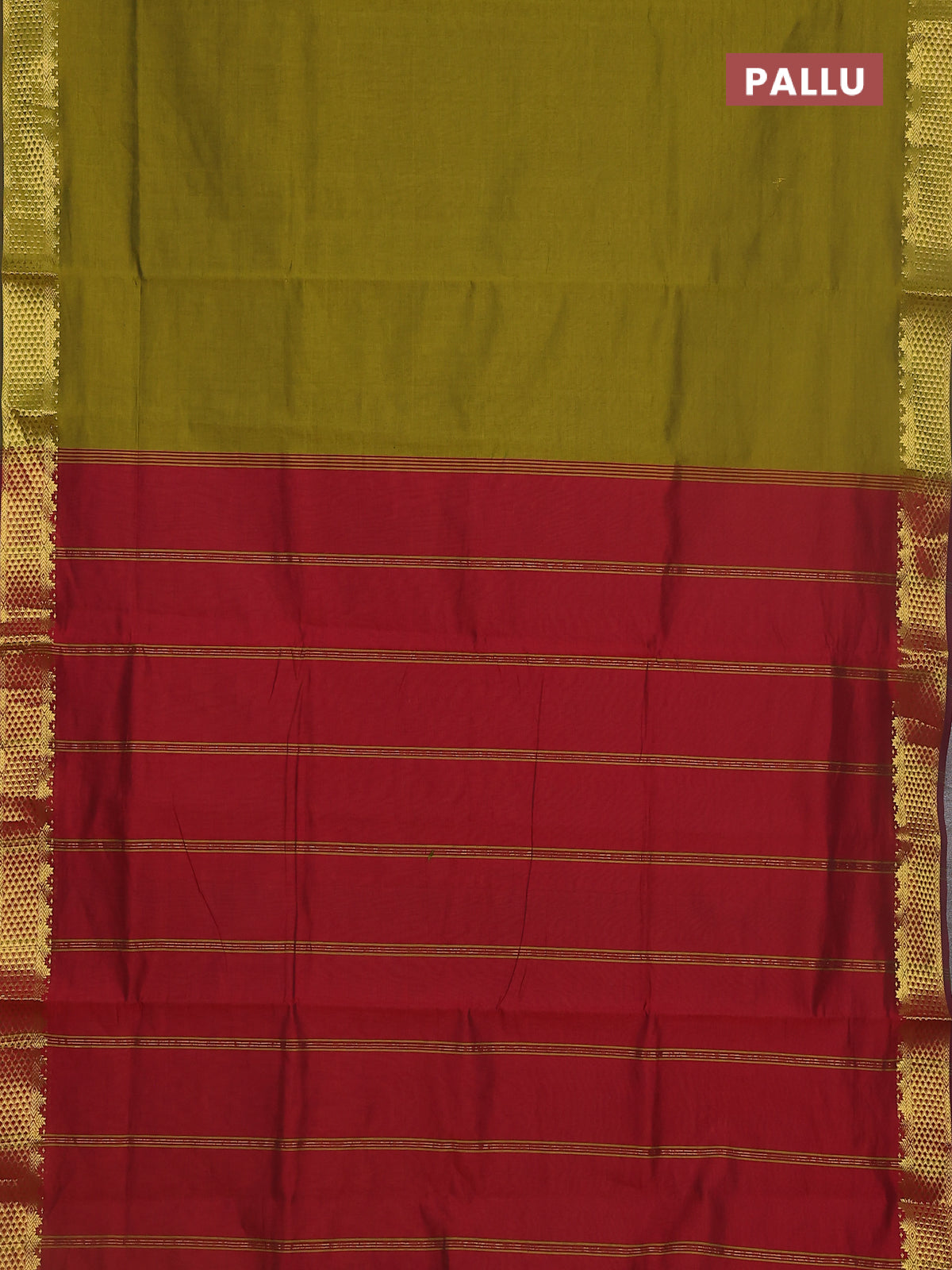10 yards Poly cotton saree mehendi green and maroon with plain body and zari woven border