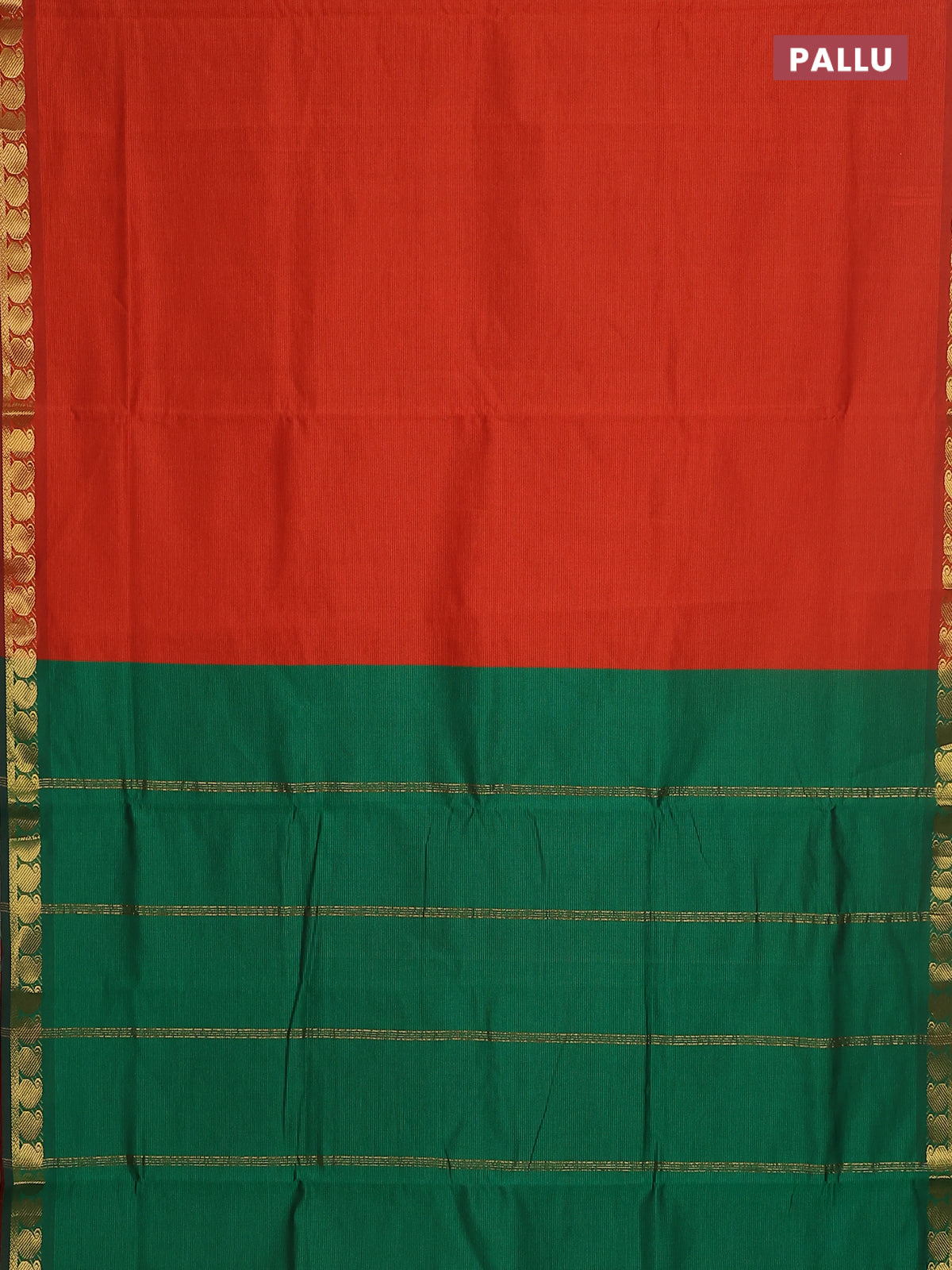 10 yards Poly cotton saree orange and green with plain body and zari woven border