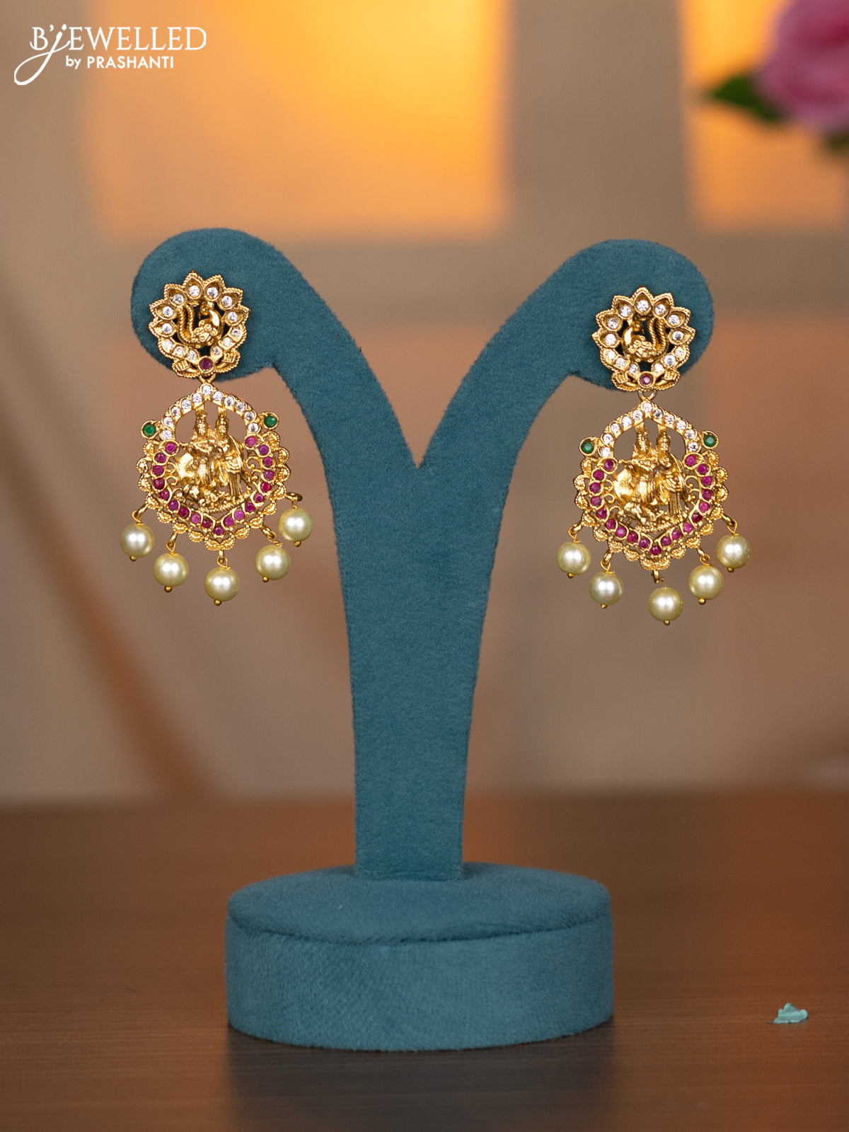 Antique necklace radha krishna pendant with kemp & cz stones and pearl hangings