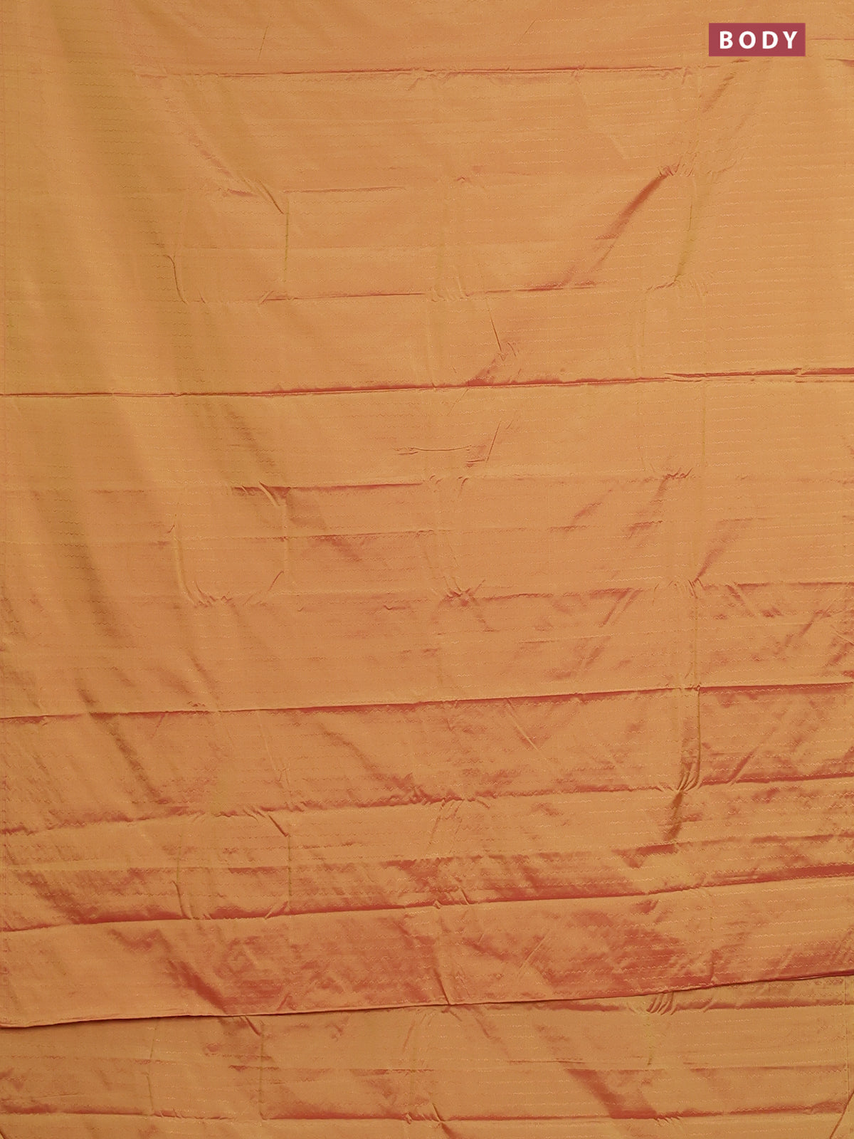 Arani semi silk saree dual shade of mustard with allover copper zari weaves in borderless style