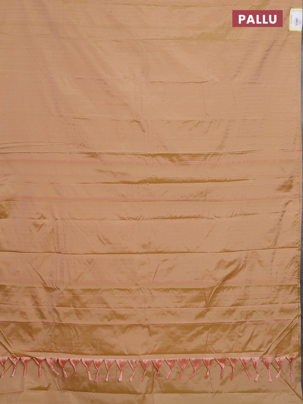 Arani semi silk saree dual shade of sandal with allover copper zari weaves in borderless style