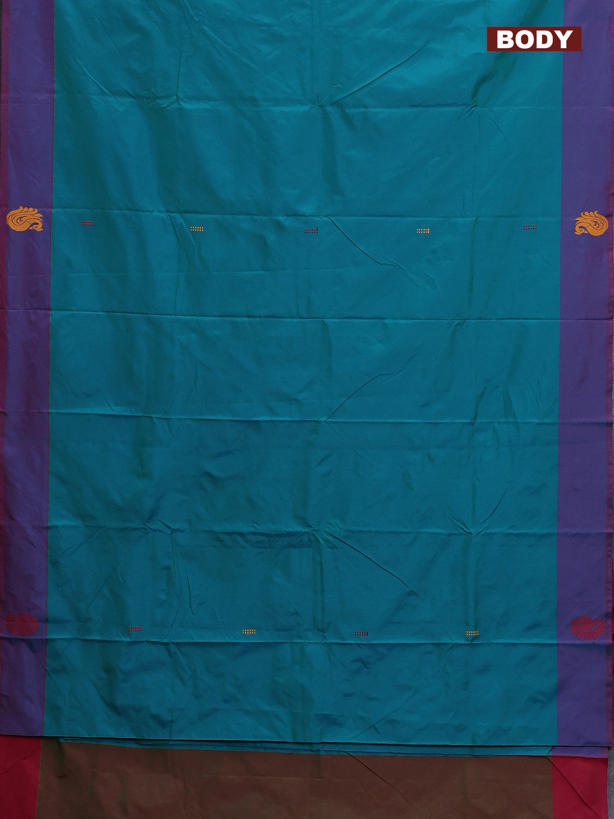 Arani semi silk saree dual shade of teal green and maroon with thread woven buttas and thread woven butta border