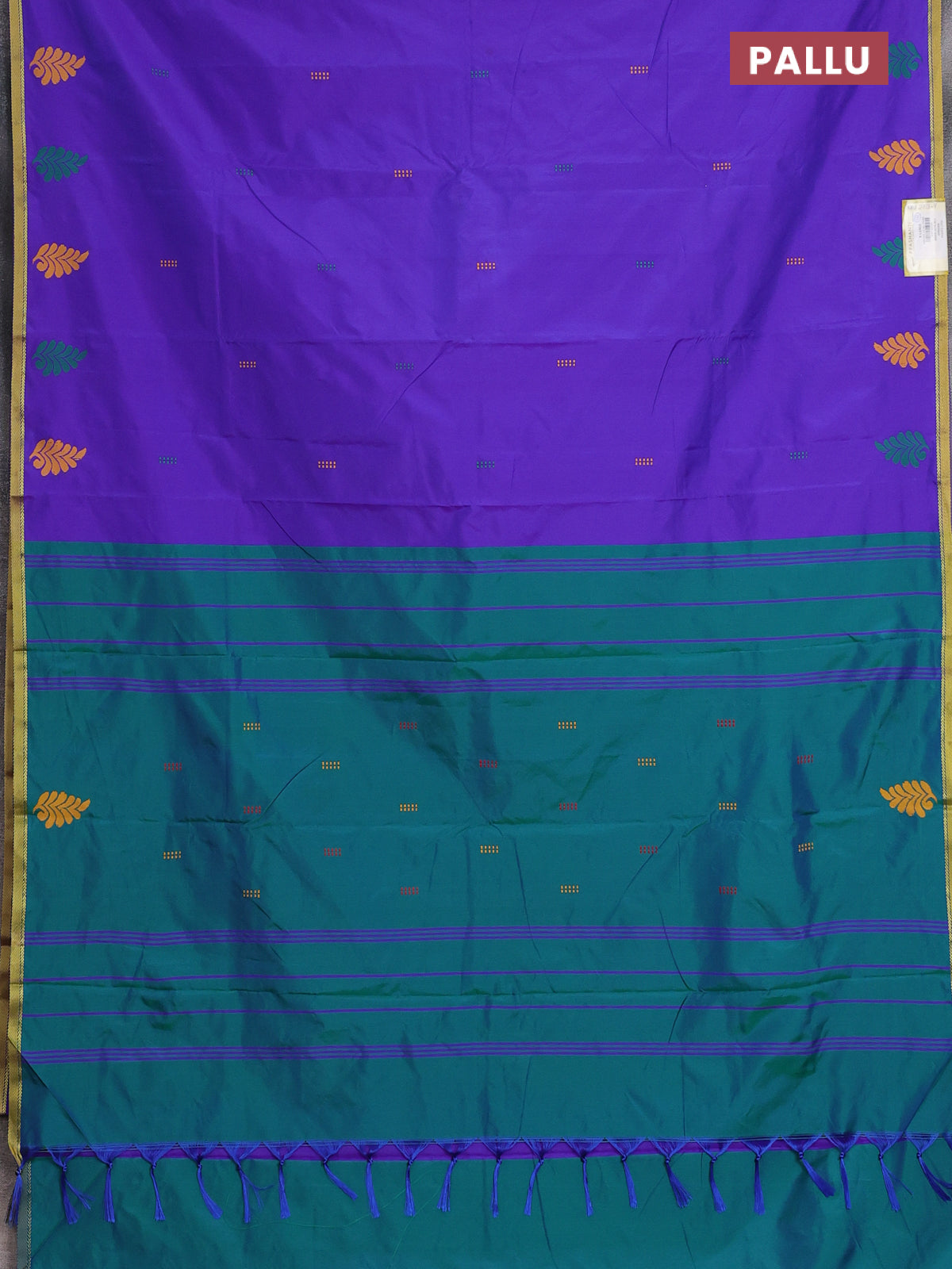 Arani semi silk saree dual shade of violet and dual shade of green with thread woven buttas and piping border