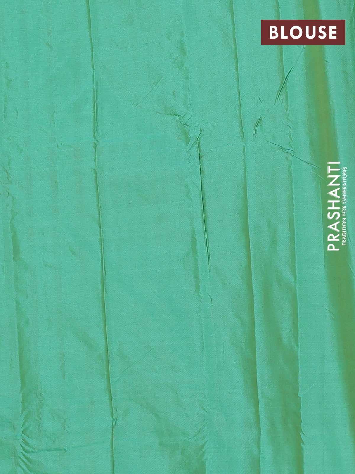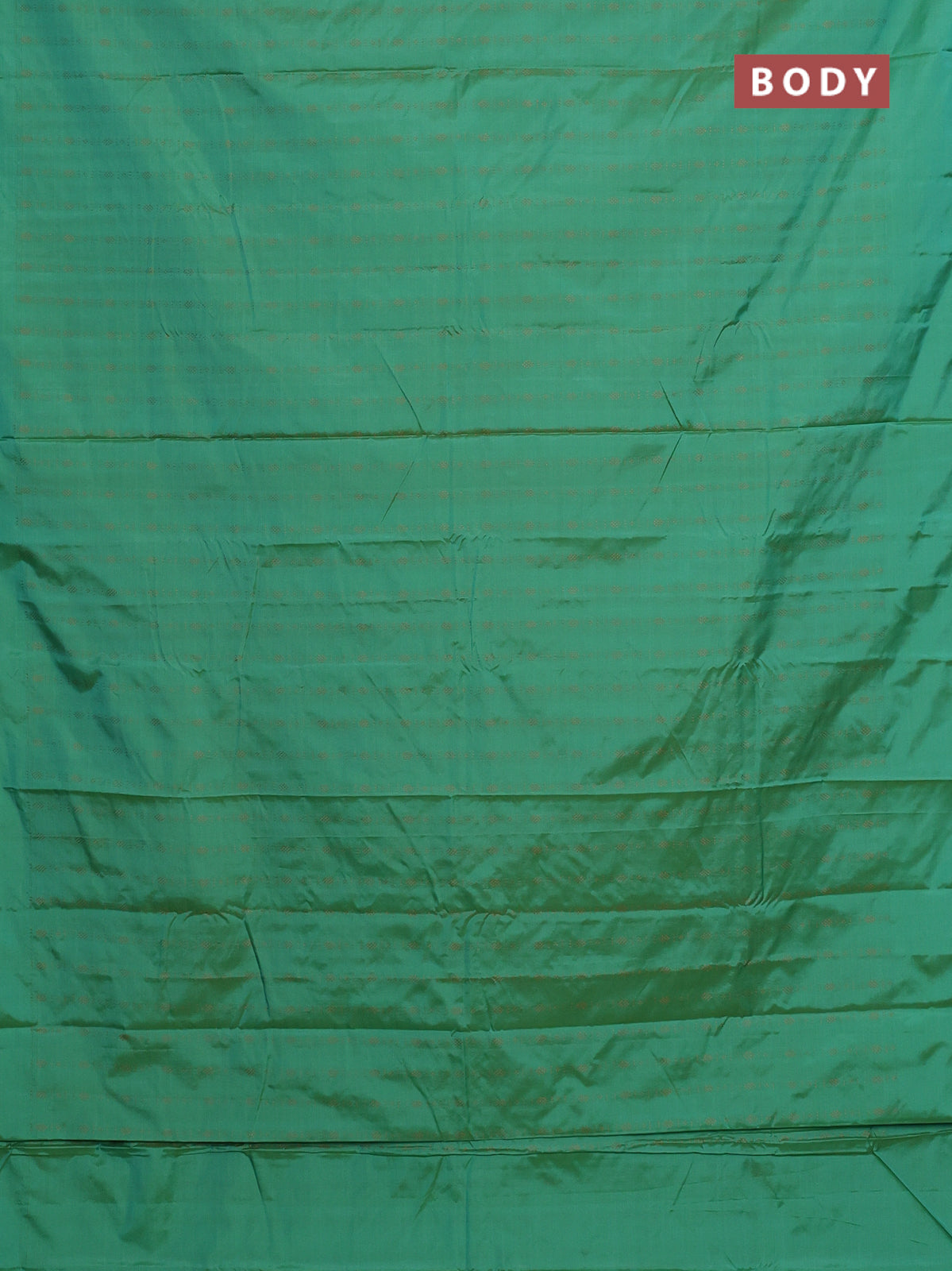 Arani semi silk saree green with allover copper zari weaves in borderless style