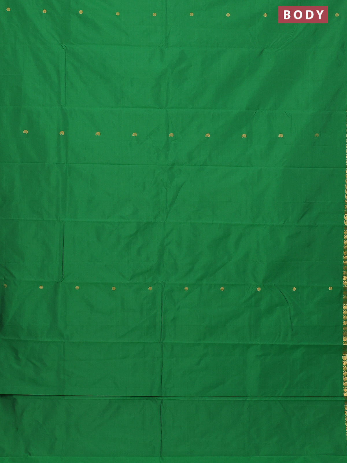 Arani semi silk saree green with rudhraksha & paisley zari woven buttas and zari woven border