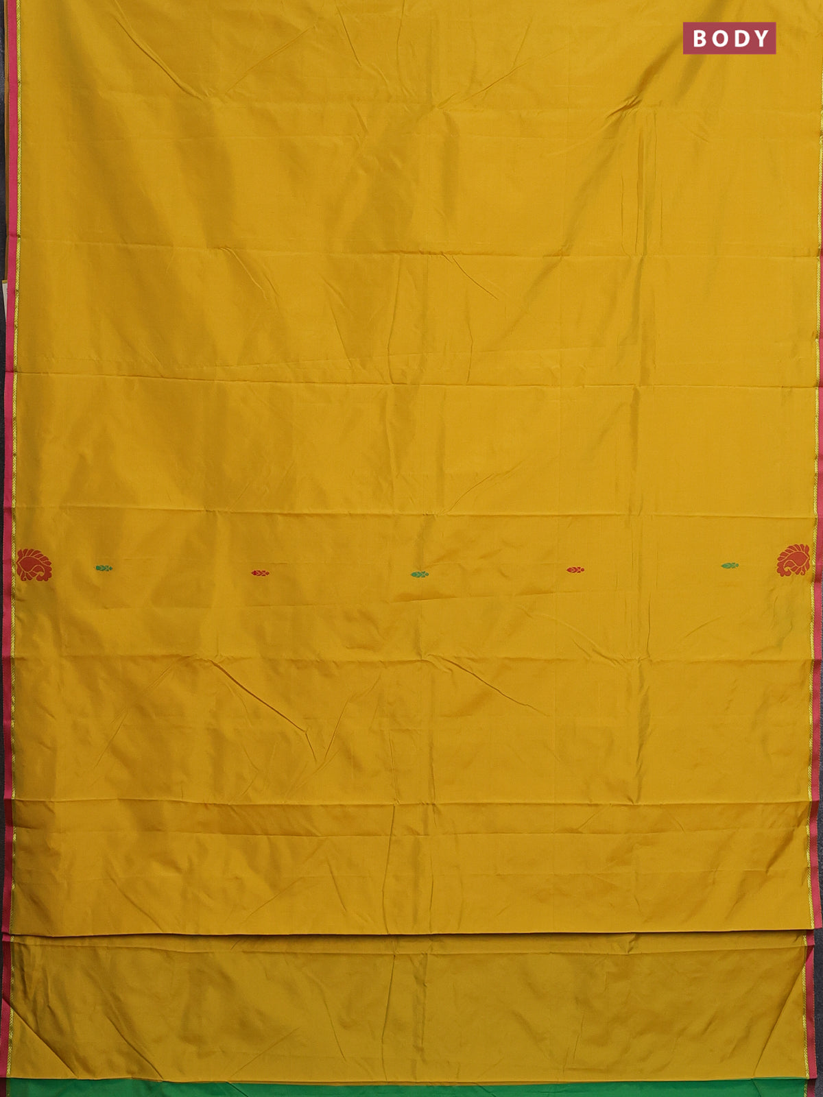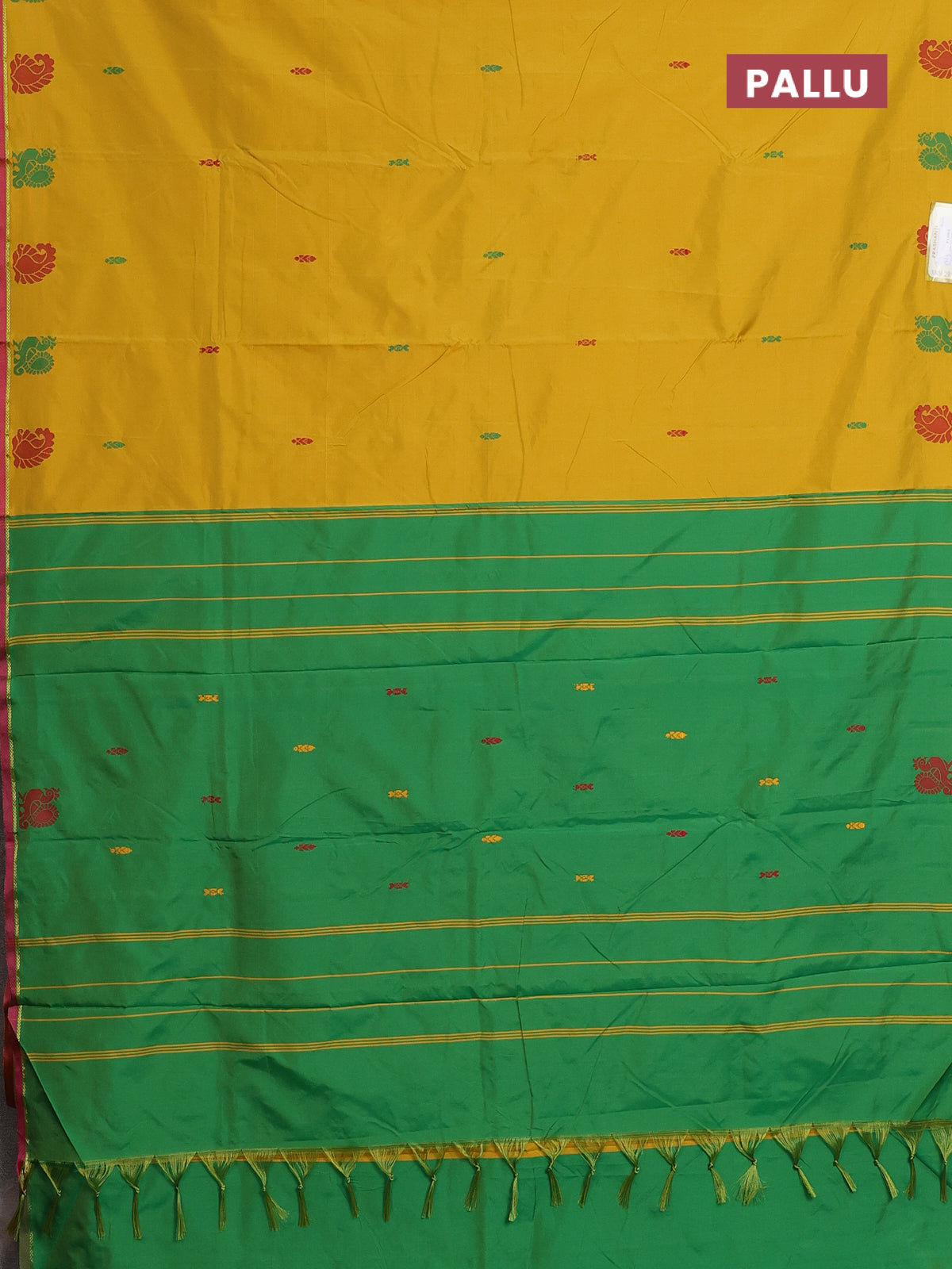 Arani semi silk saree mustard yellow and dual shade of green with thread woven buttas and thread woven butta border