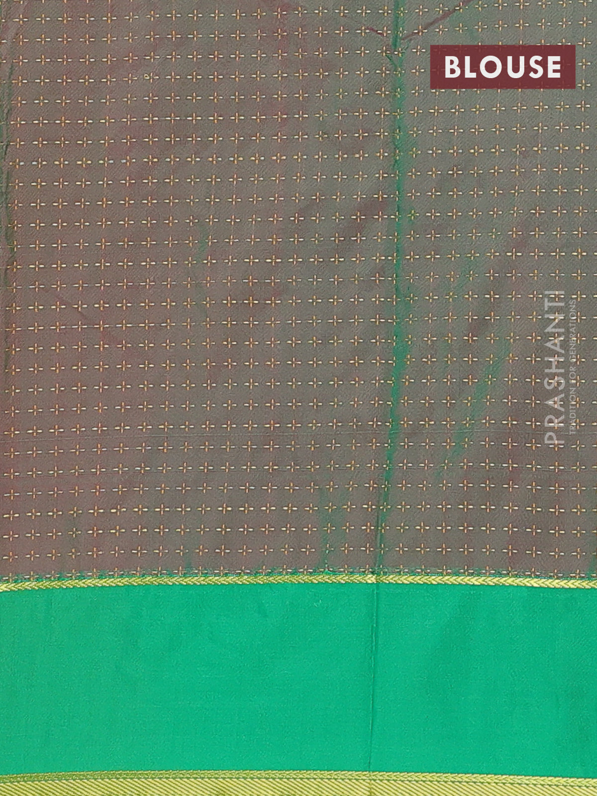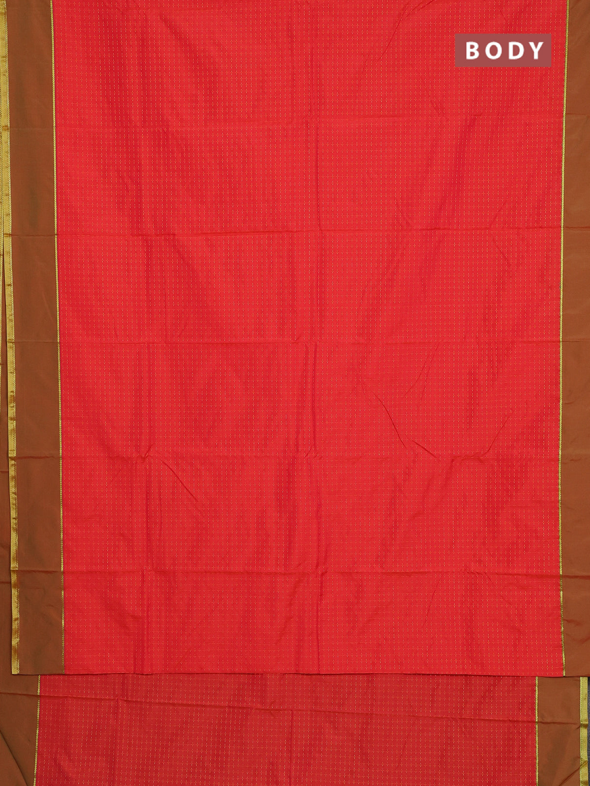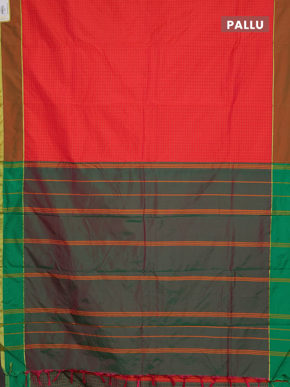 Arani semi silk saree orange and dual shade of green with allover thread weaves and rettapet zari woven border`