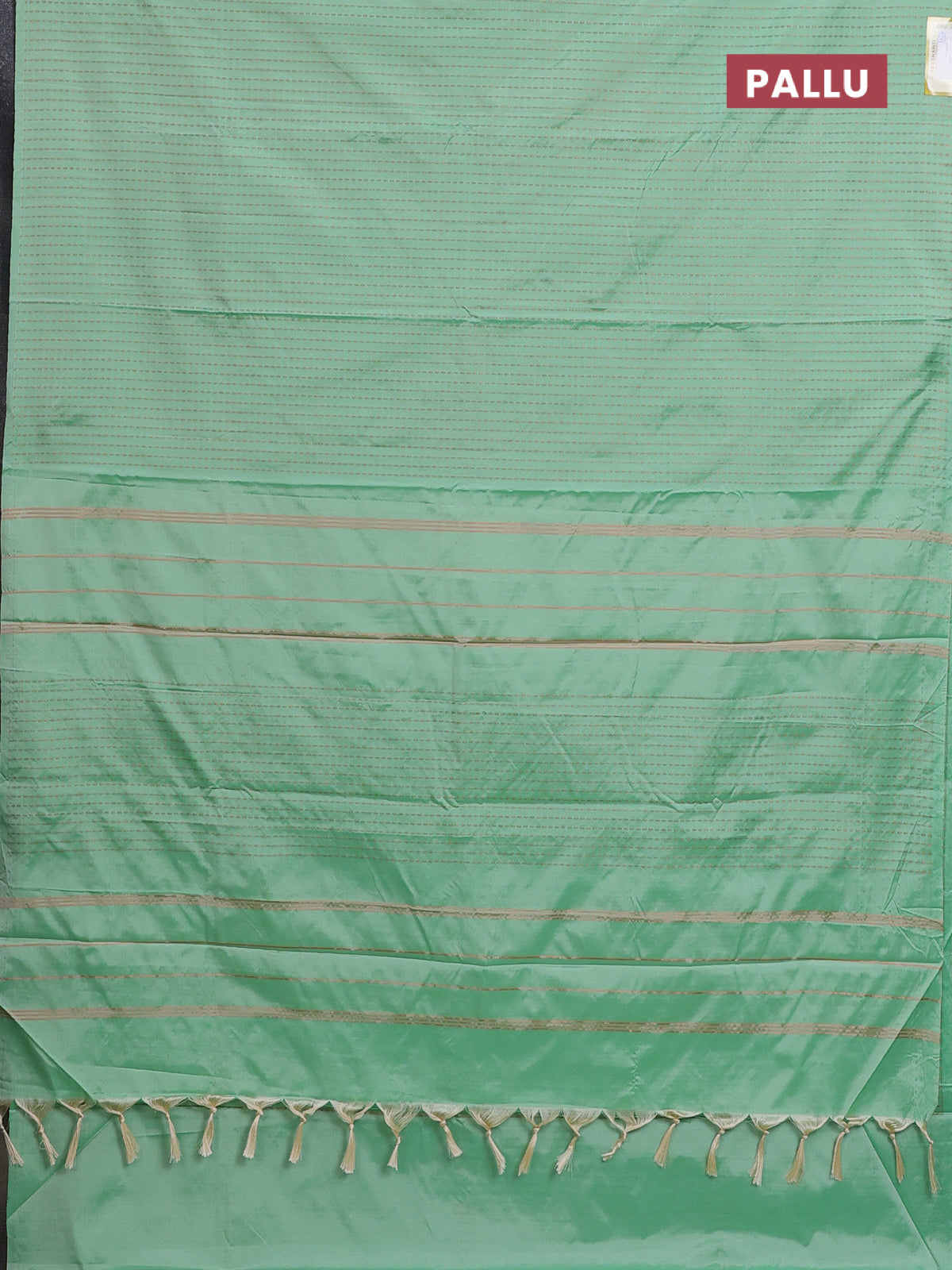 Arani semi silk saree pastel green with allover copper zari weaves in borderless style