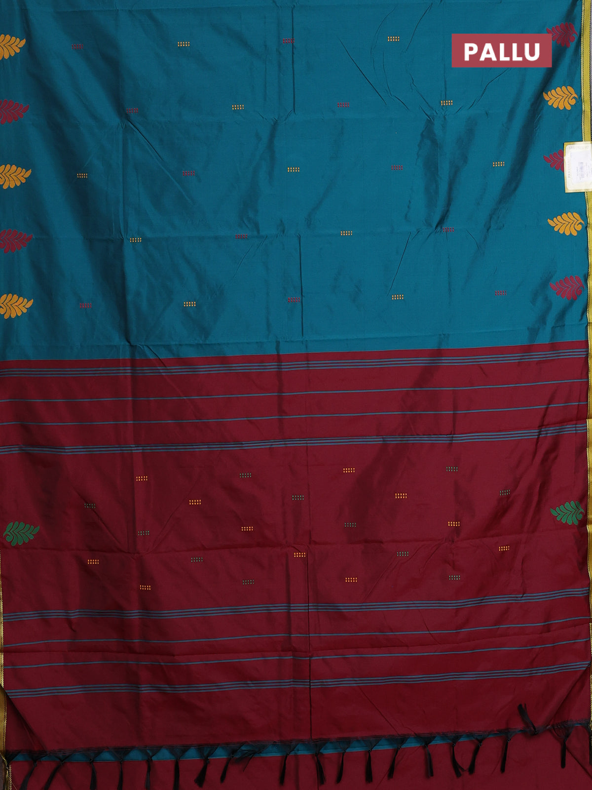 Arani semi silk saree peacock green and maroon with thread woven buttas and thread woven butta border