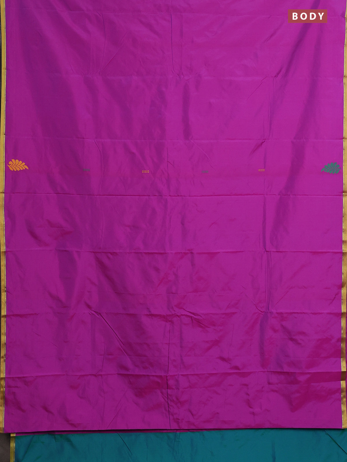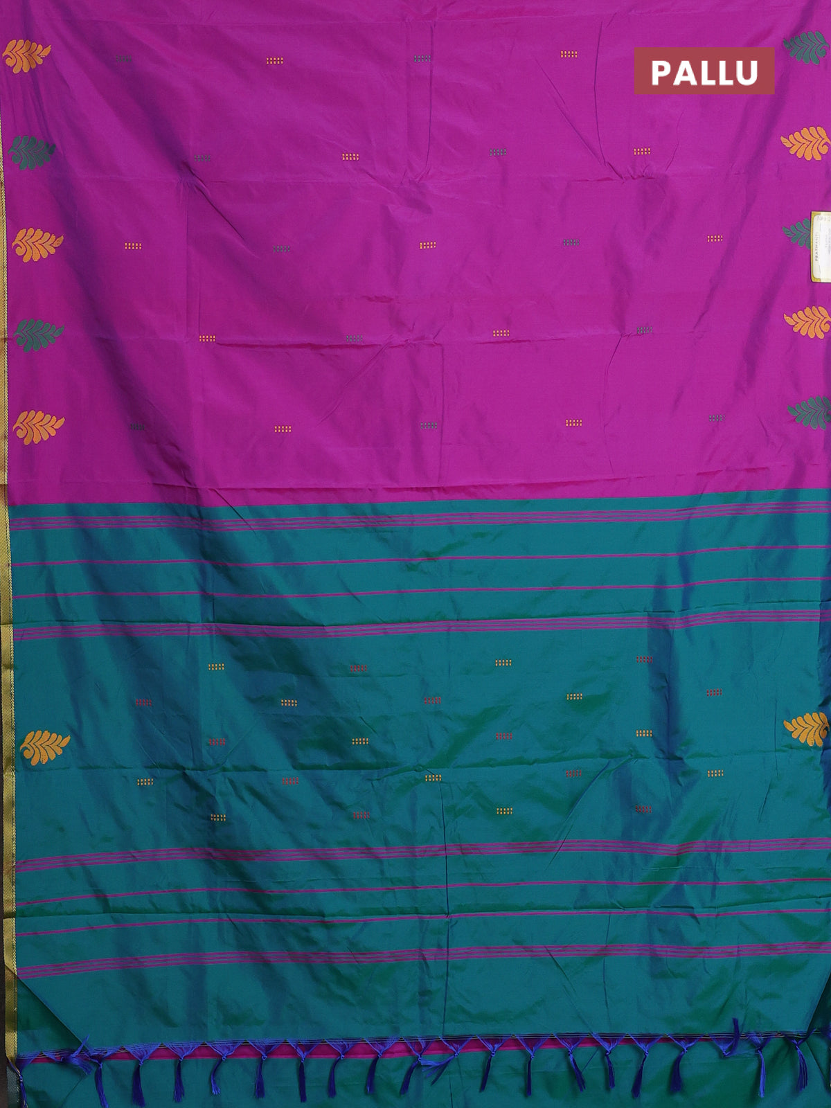 Arani semi silk saree purple and dual shade of teal green with thread woven buttas and piping border