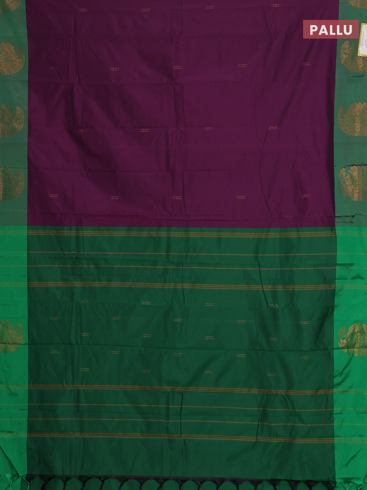 Arani semi silk saree purple and green with zari woven buttas and paisley zari woven butta border