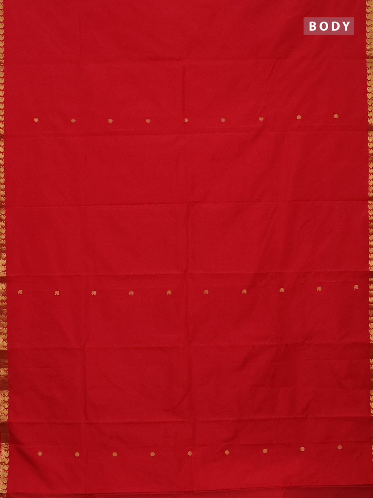Arani semi silk saree red with rudhraksha & paisley zari woven buttas and zari woven border
