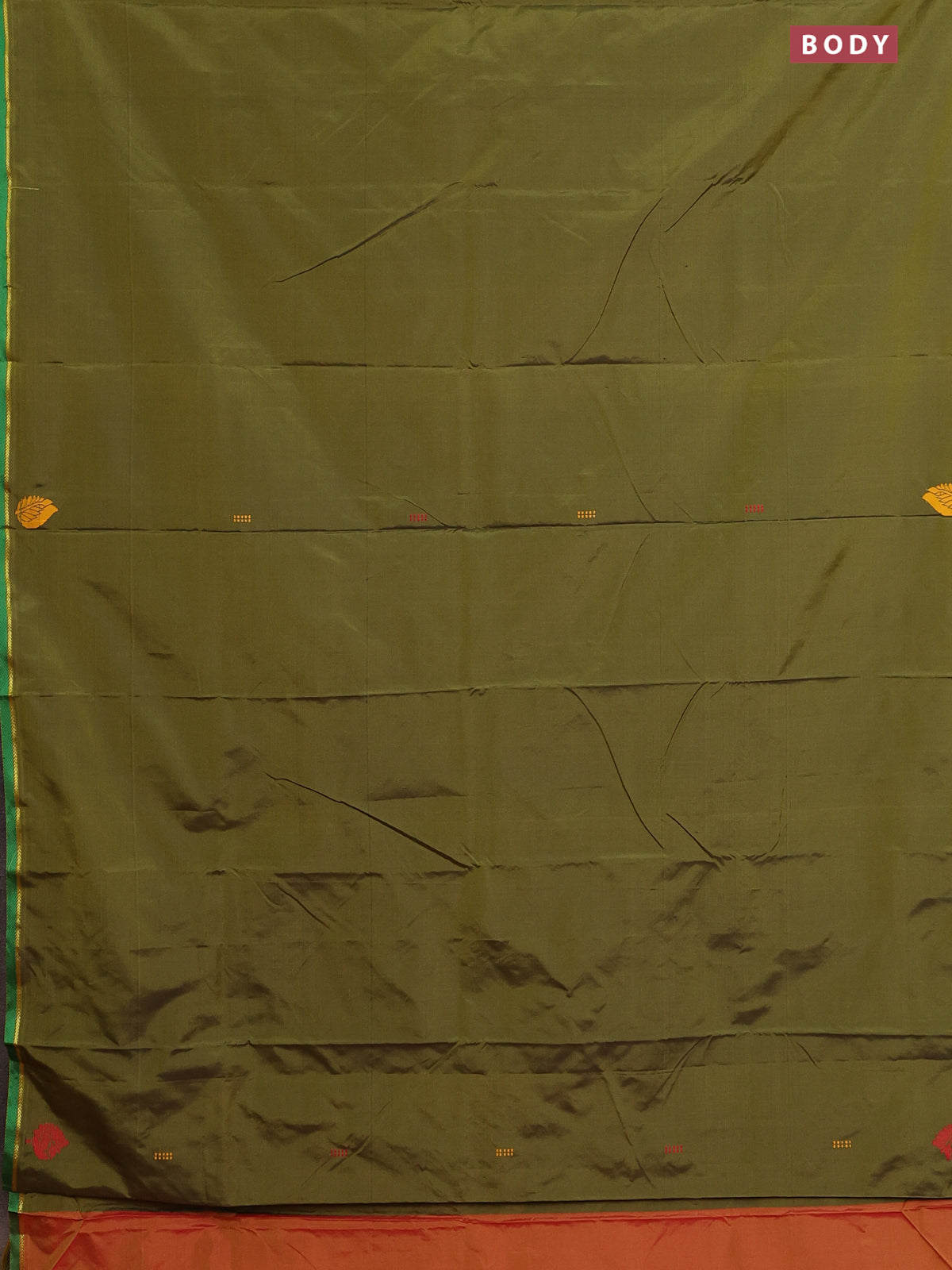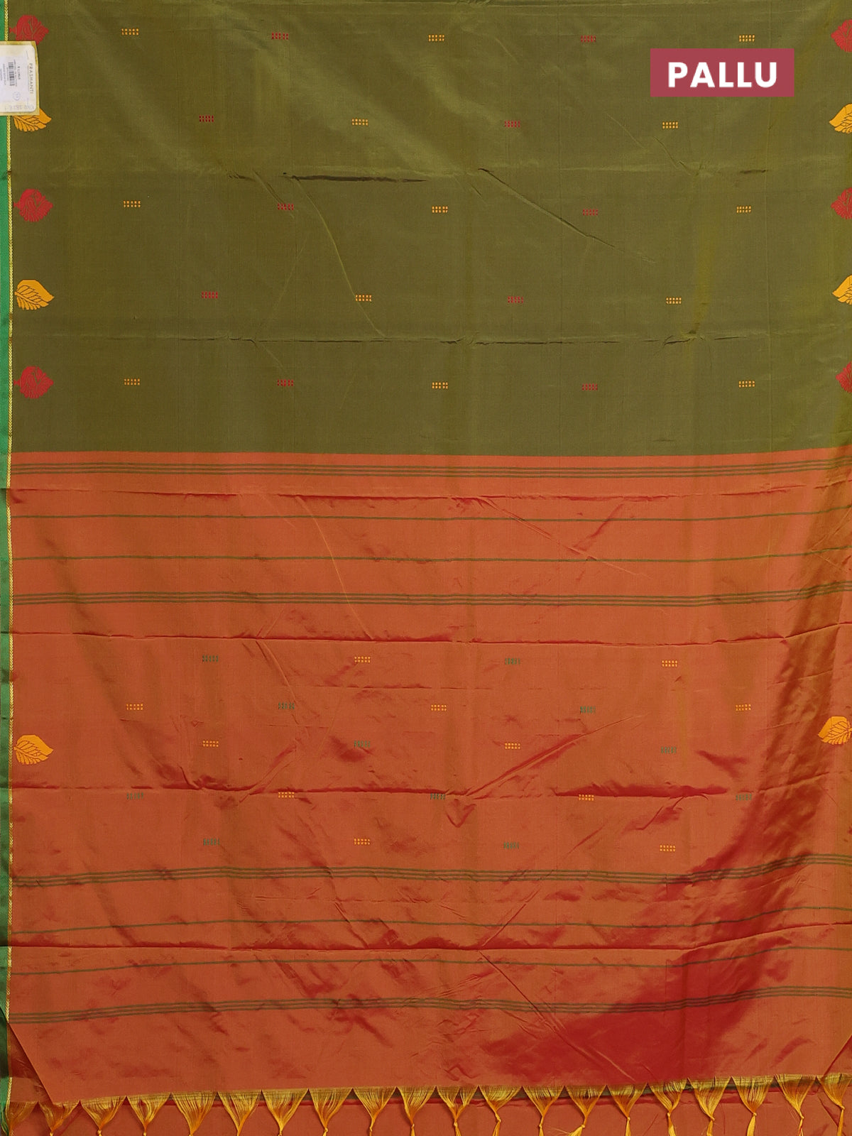 Arani semi silk saree sap green and dual shade of yellowish pink with thread woven buttas and thread woven butta border
