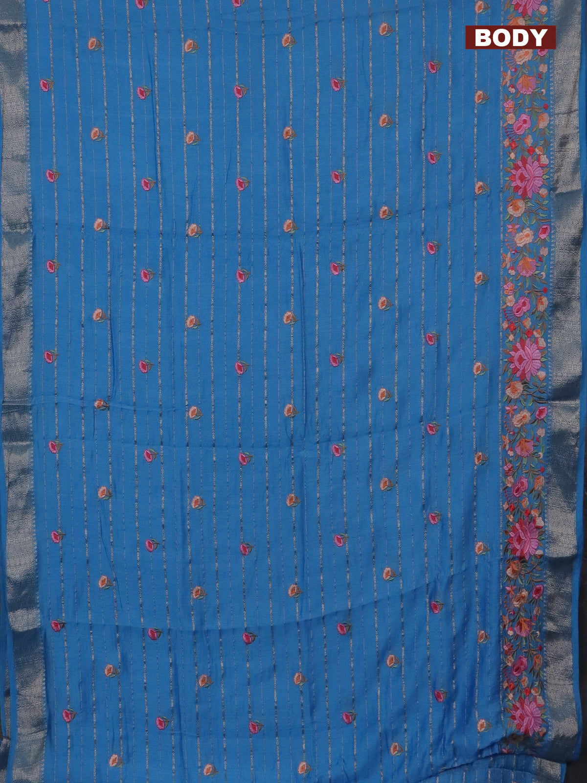 Assam silk saree light blue with allover zari weaves & floral embroidery work buttas and zari woven border