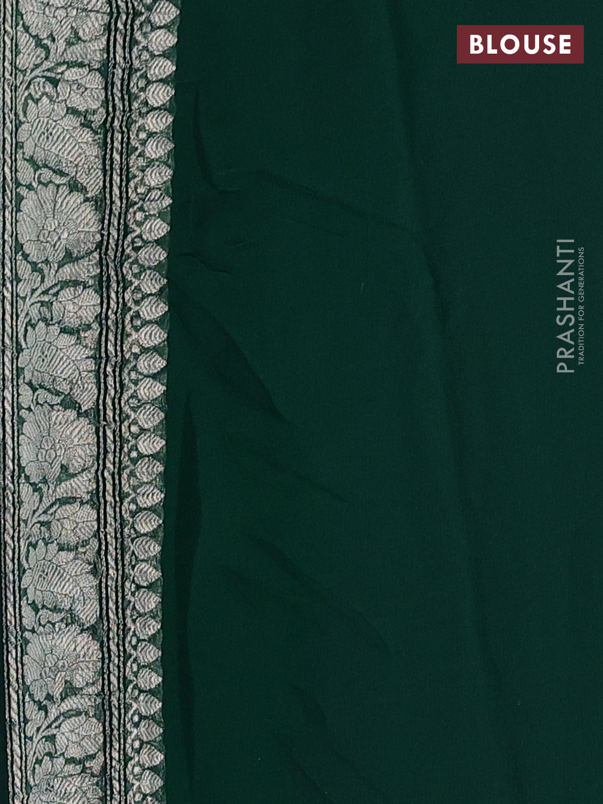 Banarasi chiffon silk saree violet and dark green with silver zari woven buttas and silver zari woven border