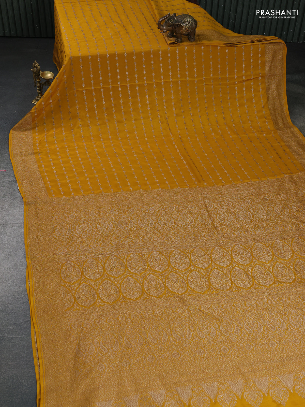 Banarasi crepe saree mustard yellow with allover geometric weaves and woven border
