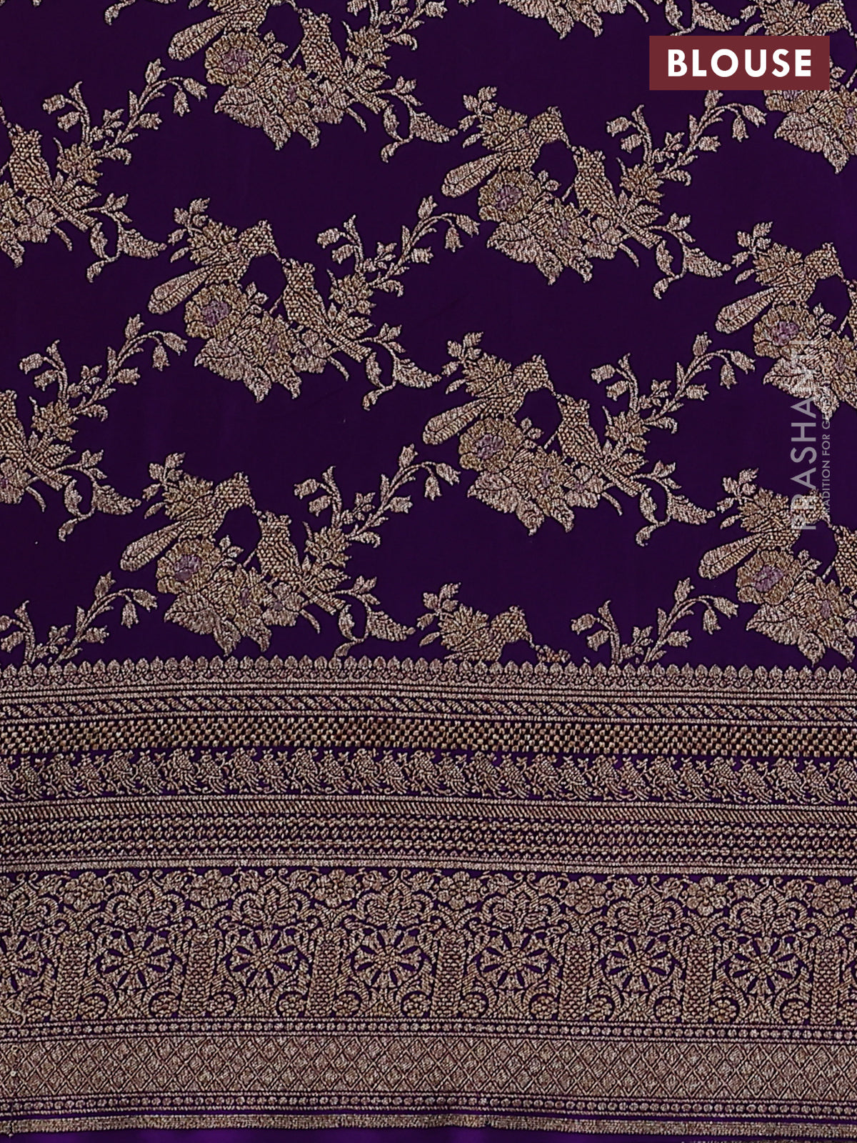 Banarasi crepe saree orange and pink violet with woven buttas and long woven border