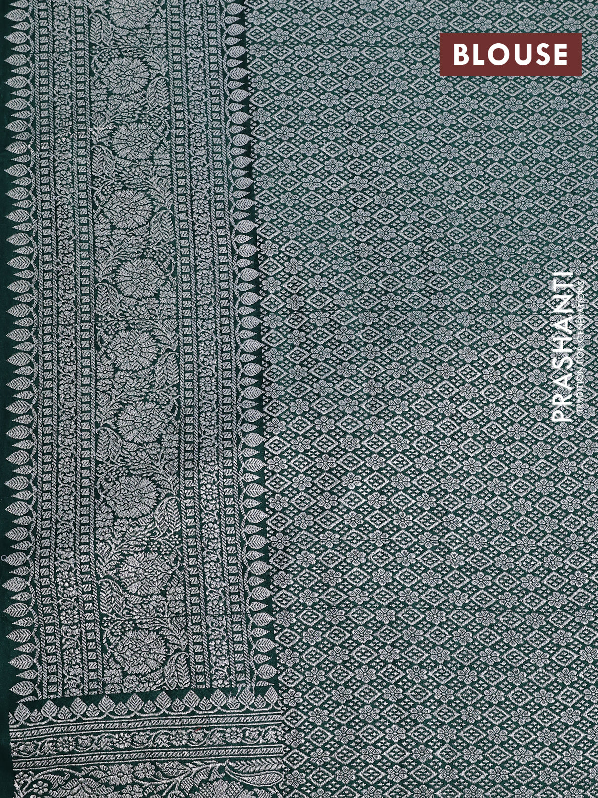 Banarasi crush crepe saree dark green with plain body and zari woven border