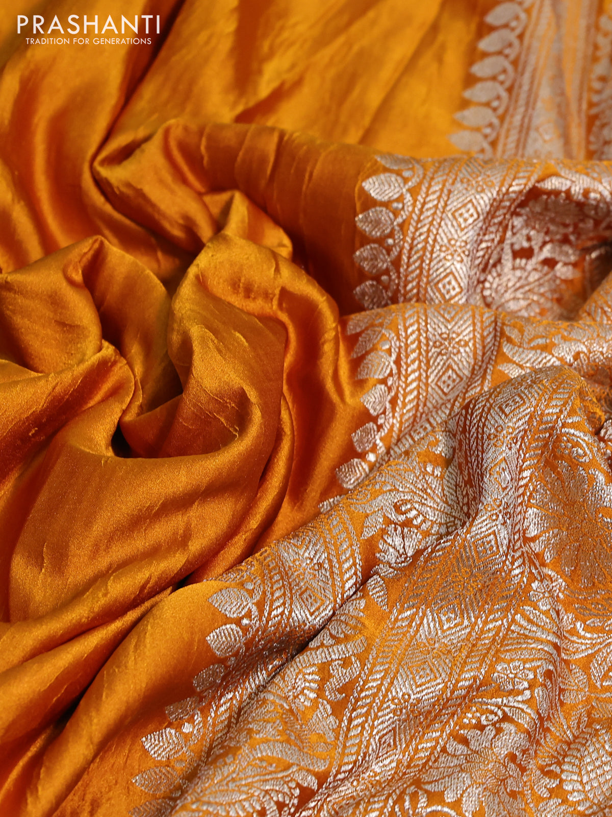 Banarasi crush crepe saree mango yellow with plain body and zari woven border