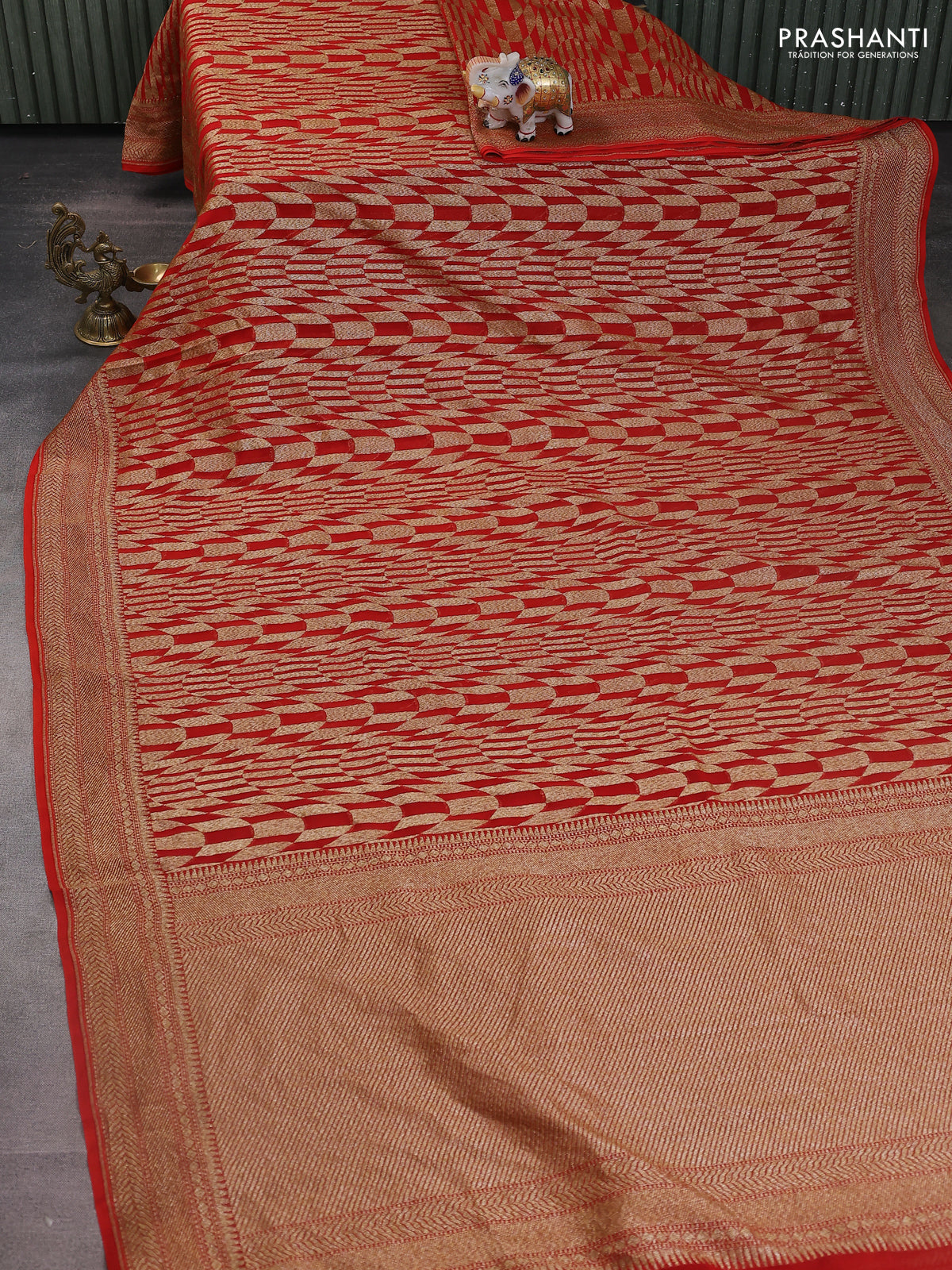 Banarasi georgette saree orange with allover geometric weaves and woven border