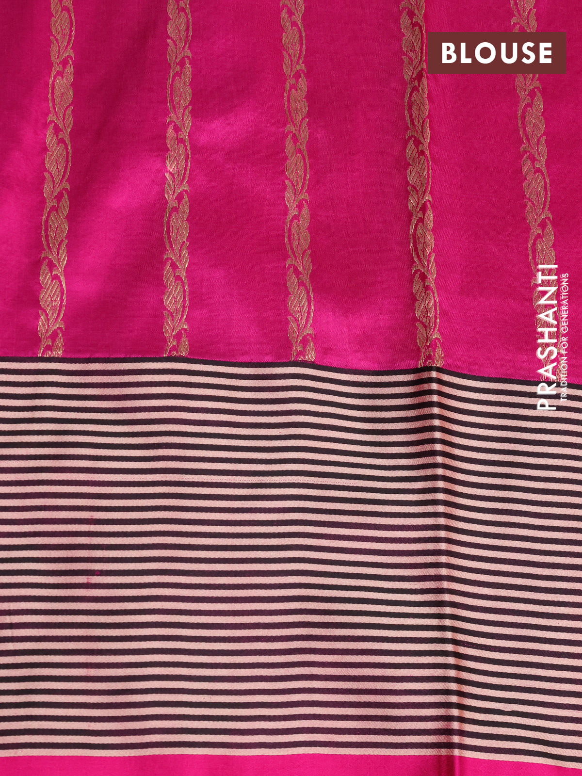 Banarasi katan silk saree green and pink with thread & zari woven floral buttas and simple border