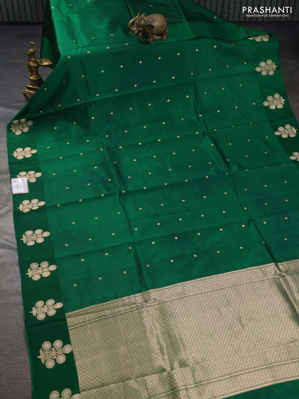 Banarasi poona silk saree green with zari woven buttas and zari woven butta border