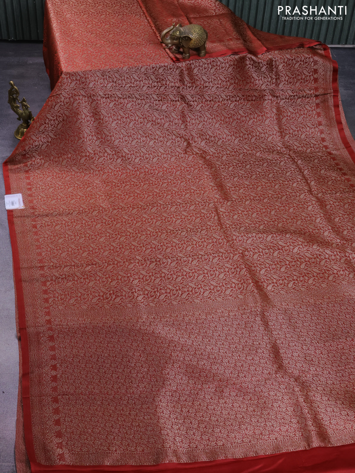 Banarasi semi crepe saree rust shade with allover thread & zari woven brocade weaves and woven border