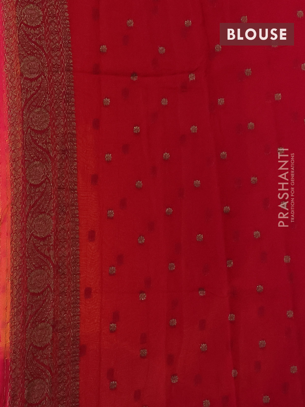 Banarasi semi georgette saree mustard yellow and pink with allover thread & zari woven buttas and woven border