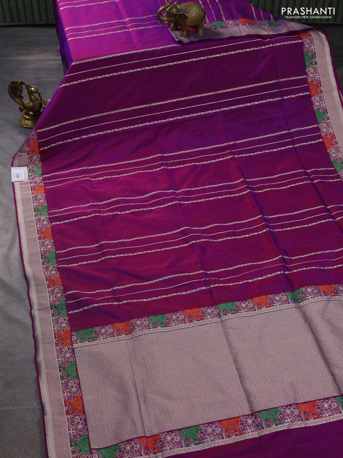 Banarasi semi katan silk saree dual shade of purple with allover zari weaves and thread & zari woven border