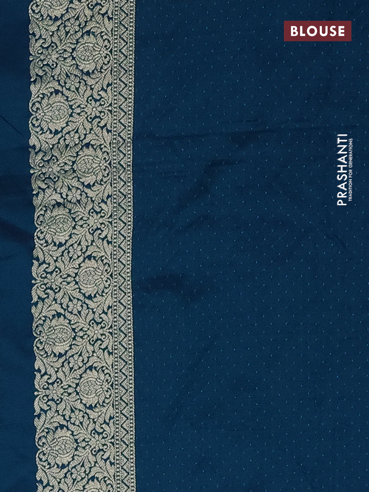 Banarasi semi mushru silk saree dual shade of blue with allover zig zag zari weaves and zari woven border