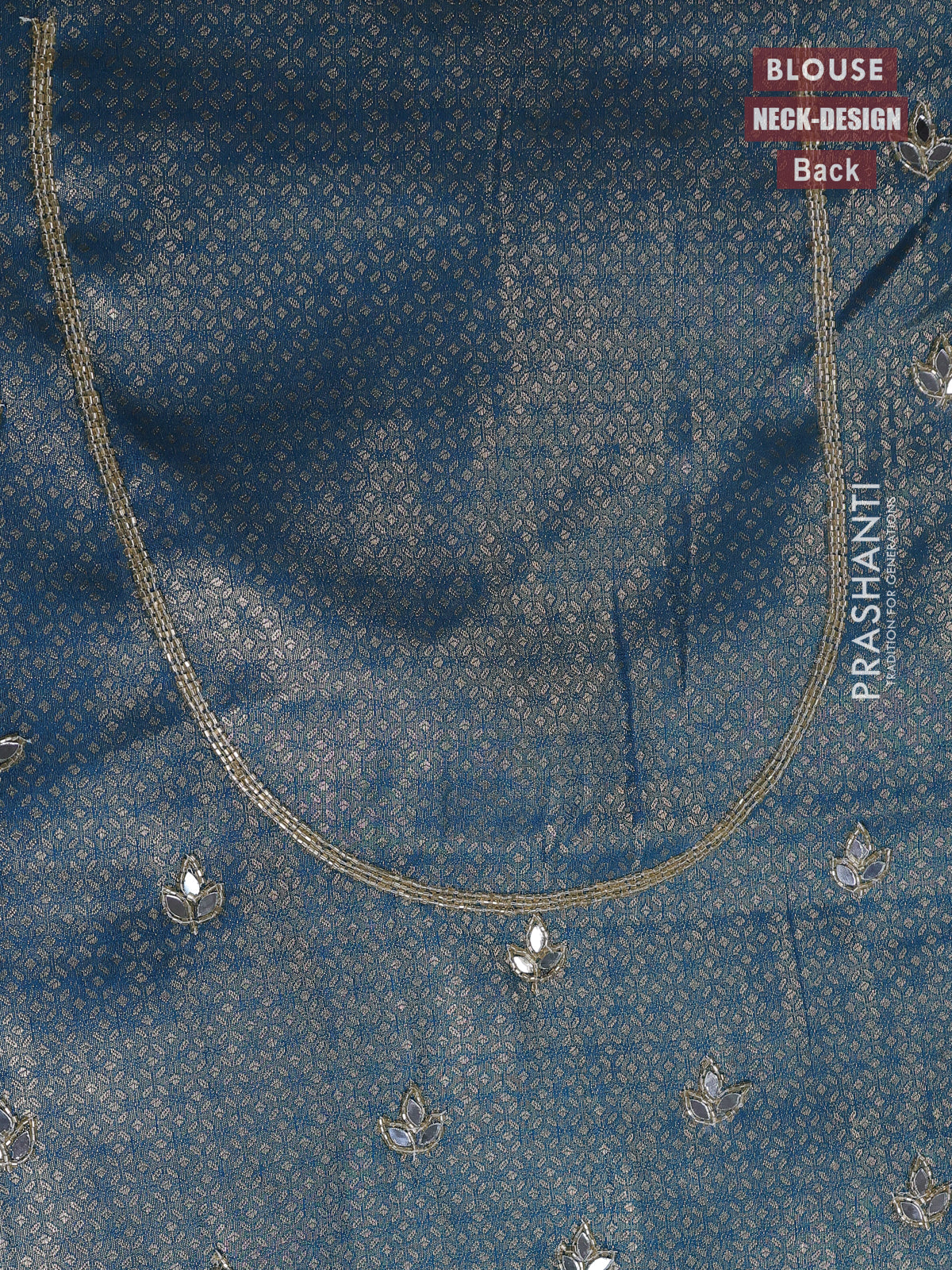 Banarasi silk saree peacock blue with allover zari woven brocade weaves and zaridosi gotapatti work border