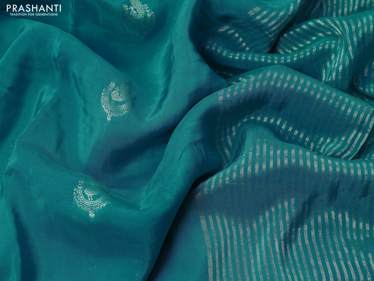 Banarasi silk saree teal blue with annam zari woven buttas and zari woven border