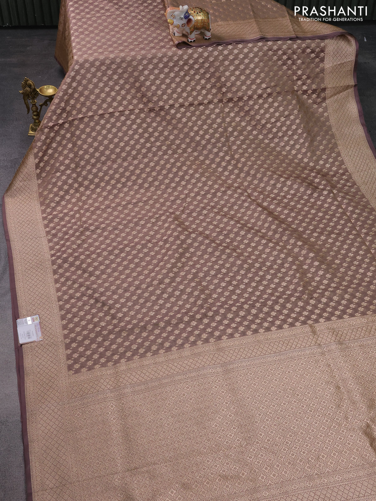 Banarasi tissue silk saree pastel brown with allover zari woven brocade weaves and zari woven border