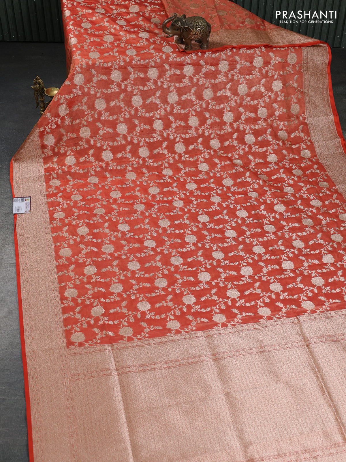 Banarasi tissue silk saree rustic orange with allover zari woven brocade weaves and zari woven border