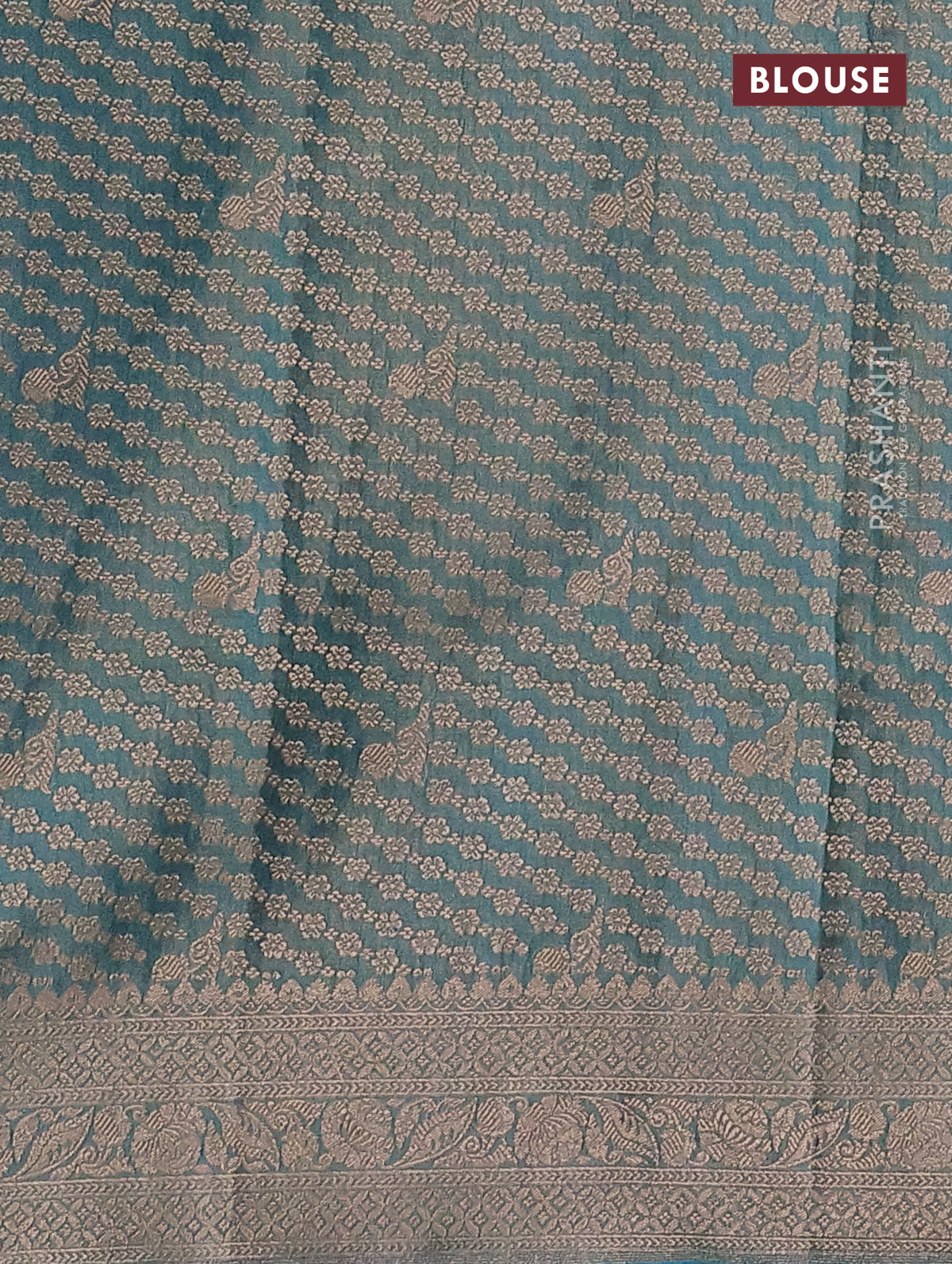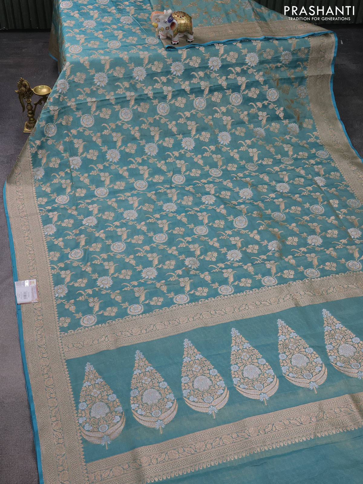 Banarasi tissue silk saree teal blue with allover silver & gold zari weaves and zari woven border