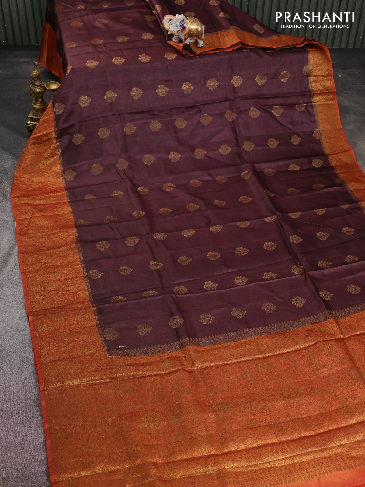 Banarasi tussar silk saree brown and orange with thread & zari woven buttas and woven border