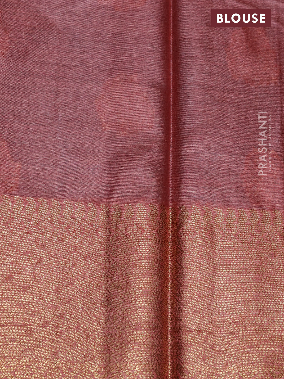 Banarasi tussar silk saree peacock blue and rust shade with thread & zari buttas and banarasi style border